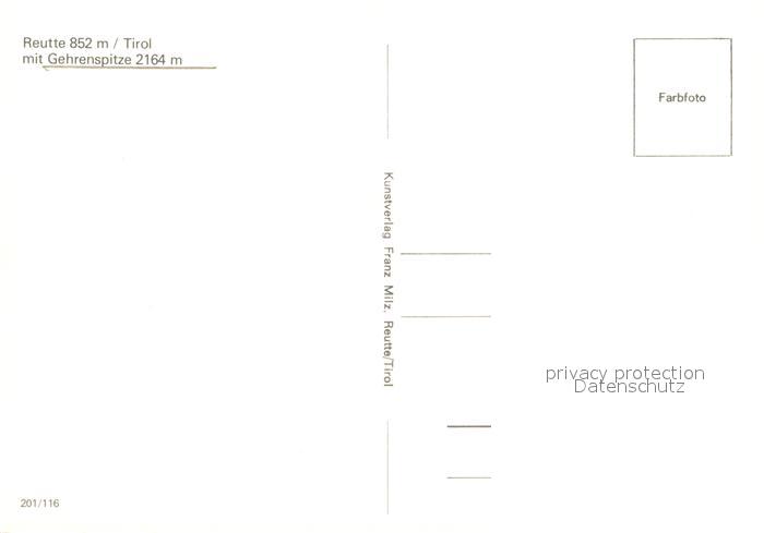 73598405 Reutte Tirol Gehrenspitze postalisch nicht gelaufen Erhaltung siehe scans [PaolaD17] KatCode: 11390331070828