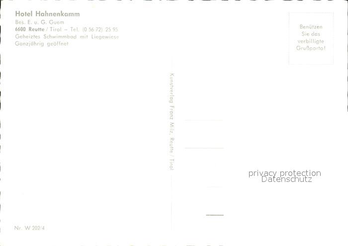 72470062 Reutte Tirol Hotel Hahnenkamm postalisch nicht gelaufen Erhaltung siehe scans KatCode: 11390331070828
