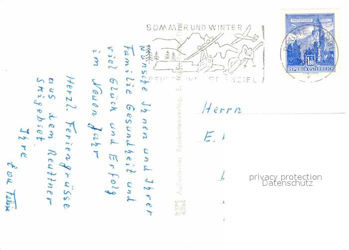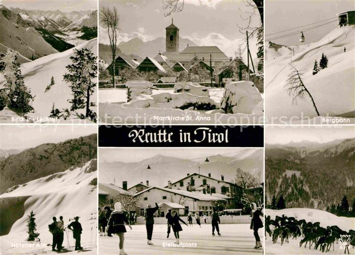 72831656 alte Postkarte Reutte Tirol Lechtal Pfarrkirche Sankt Anna Bergbahn Hoefener Alm Eislaufplatz postalisch gelaufen Erhaltung siehe scans [KathaD81] KatCode: 11390331070828
