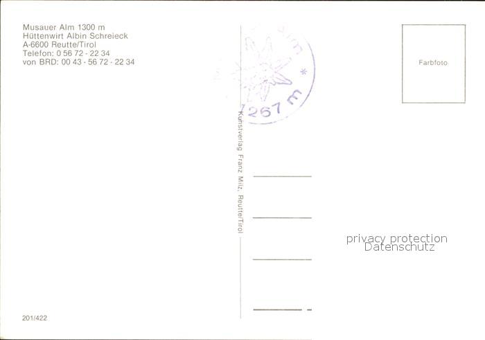 72447139 Reutte Tirol Musauer Alm Berggaststaette Alpenblick postalisch nicht gelaufen Erhaltung siehe scans KatCode: 11390331070828