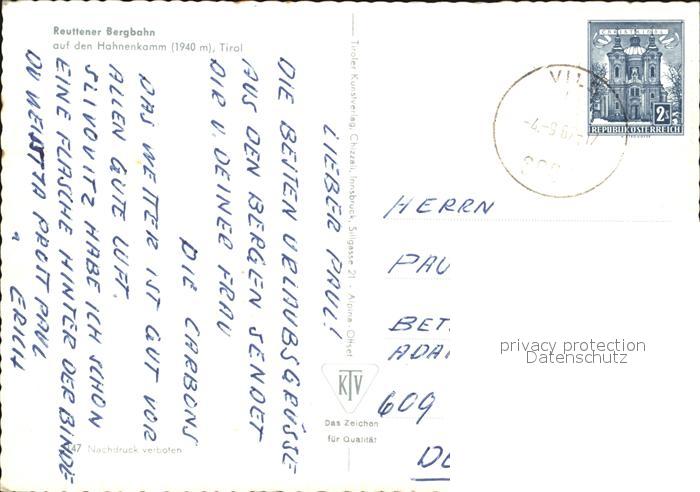 72505837 alte Postkarte Reutte Tirol Reuttener Bergbahn Hahnenkamm Zugspitze postalisch gelaufen Erhaltung siehe scans KatCode: 11390331070828
