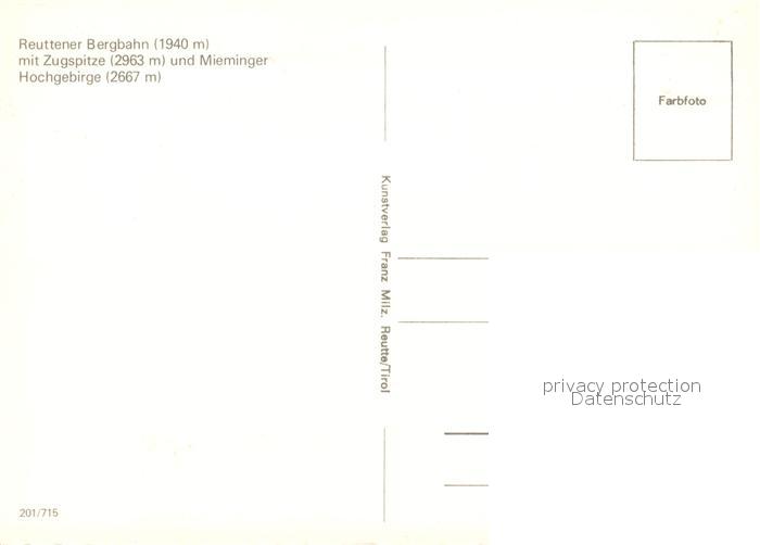 73355324 Reutte Tirol Reuttener Bergbahn mit Zugspitze und Mieminger Hochgebirge postalisch nicht gelaufen Erhaltung siehe scans [WerneD78] KatCode: 11390331070828