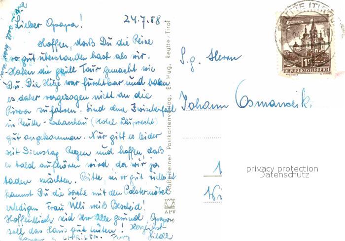 72693079 alte Postkarte Reutte Tirol Seilbahn am Hahnenkamm postalisch gelaufen Erhaltung siehe scans [LiesaD40] KatCode: 11390331070828