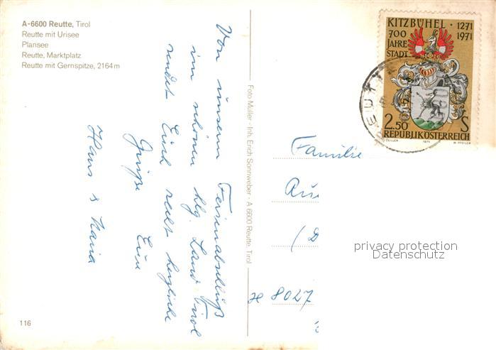 73598769 alte Postkarte Reutte Tirol Urisee Plansee Marktplatz Gernspitze postalisch gelaufen Erhaltung siehe scans [PaolaD17] KatCode: 11390331070828