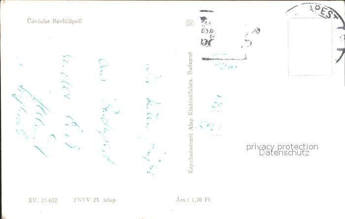 old postcard Révfueloep Hafen Gebaeude Park Boot postalisch gelaufen Erhaltung siehe scans