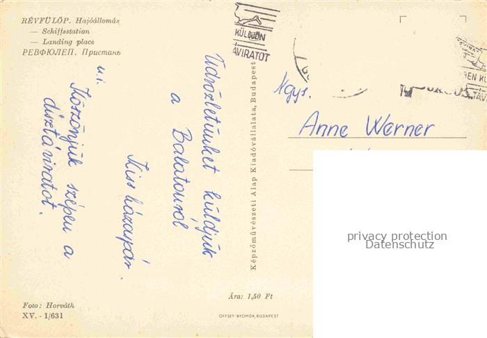74109600 old postcard Revfueloep Revfueloeproel HU Schiffsstation postalisch gelaufen Erhaltung siehe scans [WerneD78] KatCode: 11550
