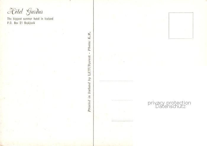 73852173 Reykjavík Hotel Gardur postalisch nicht gelaufen Erhaltung siehe scans [FriedD77] Frie Katcode 11230