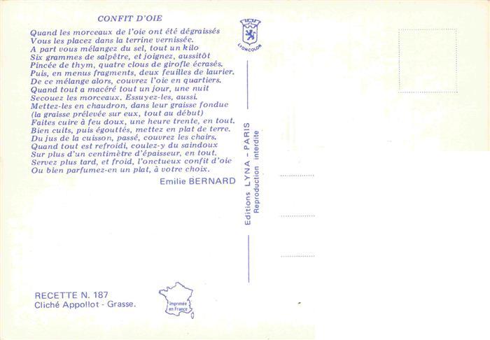 74026958 Rezept Recette– Confit d’Oie Ente postalisch nicht gelaufen Erhaltung siehe scans [SanaeD93] KatCode: 22280