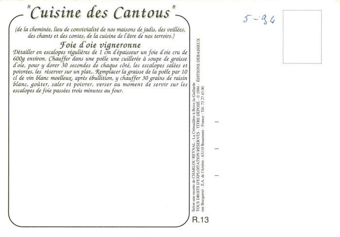 74028249 Rezept Recette– Foie d’oie vigneronne postalisch nicht gelaufen Erhaltung siehe scans [SanaeD93] KatCode: 22280