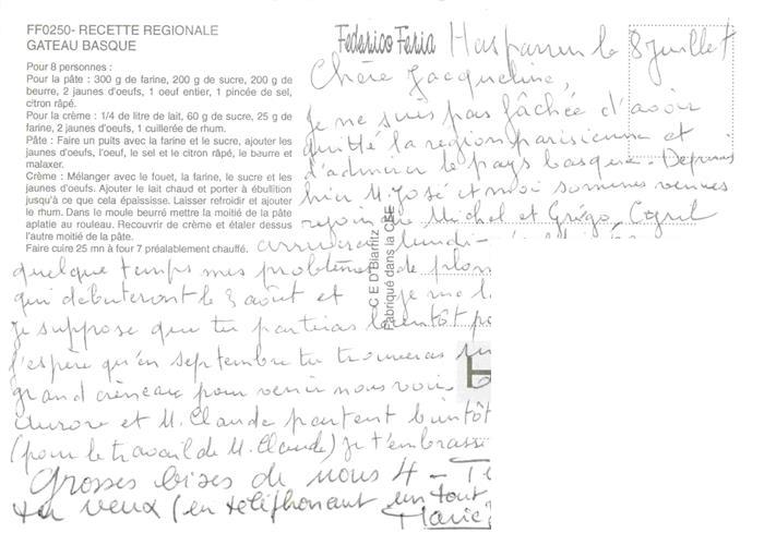 74026970 Rezept Recette– Gateau Basque Federico Feria postalisch nicht gelaufen Erhaltung siehe scans [SanaeD93] KatCode: 22280