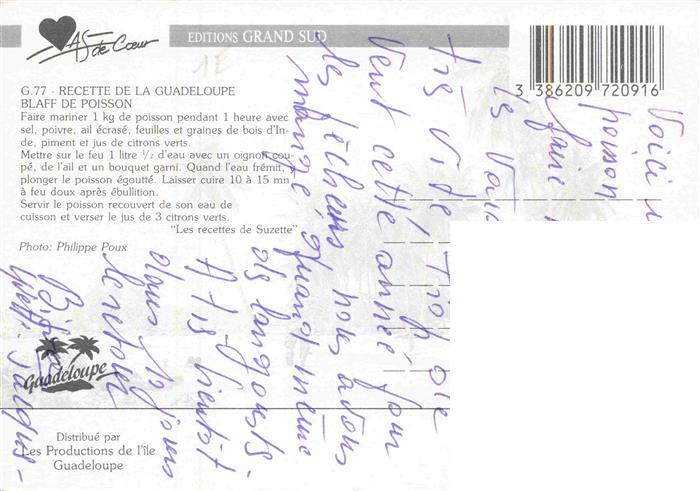 74028245 Rezept Recette– Guadeloupe Blaff de Poisson postalisch nicht gelaufen Erhaltung siehe scans [SanaeD93] KatCode: 22280