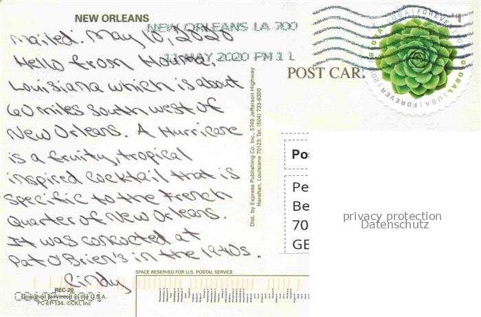 74017332 alte Postkarte Rezept Recette– Hurricane New Orleans postalisch gelaufen Erhaltung siehe scans [IrynaD87] KatCode: 22280