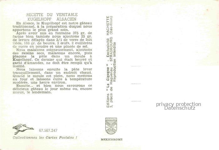 74021947 Rezept Recette– Kugelhopf Kuchen Alsac postalisch nicht gelaufen Erhaltung siehe scans [SanaeD93] KatCode: 22280