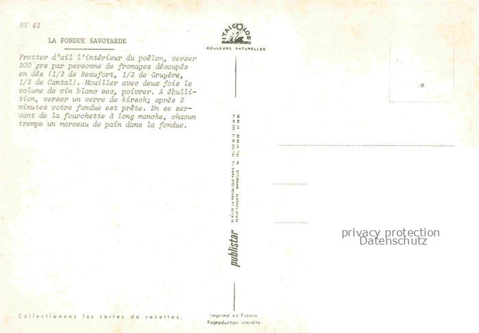 74021870 Rezept Recette– la Fondue Savoyarde postalisch nicht gelaufen Erhaltung siehe scans [SanaeD93] KatCode: 22280