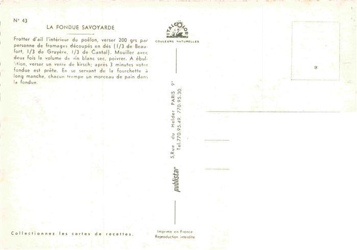 74028247 Rezept Recette– la Fondue Savoyarde postalisch nicht gelaufen Erhaltung siehe scans [SanaeD93] KatCode: 22280