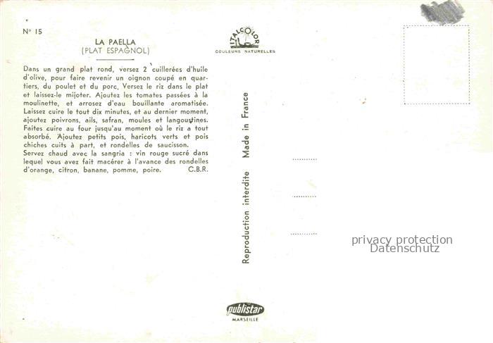 74021867 Rezept Recette– la Paella plat Espagnol postalisch nicht gelaufen Erhaltung siehe scans [SanaeD93] KatCode: 22280