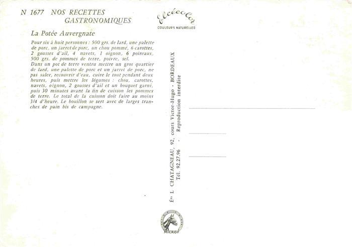 74028668 Rezept Recette– la Potee Auvergnate postalisch nicht gelaufen Erhaltung siehe scans [SanaeD93] KatCode: 22280