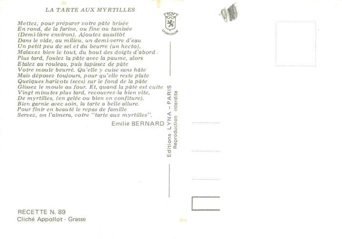 74026962 Rezept Recette– la Tarte aux Myrtilles postalisch nicht gelaufen Erhaltung siehe scans [SanaeD93] KatCode: 22280