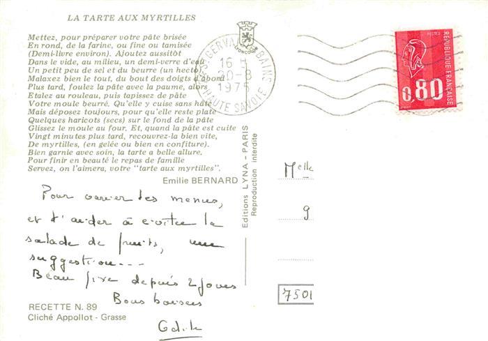 74026955 alte Postkarte Rezept Recette– la Tarte aux Myrtilles postalisch gelaufen Erhaltung siehe scans [SanaeD93] KatCode: 22280