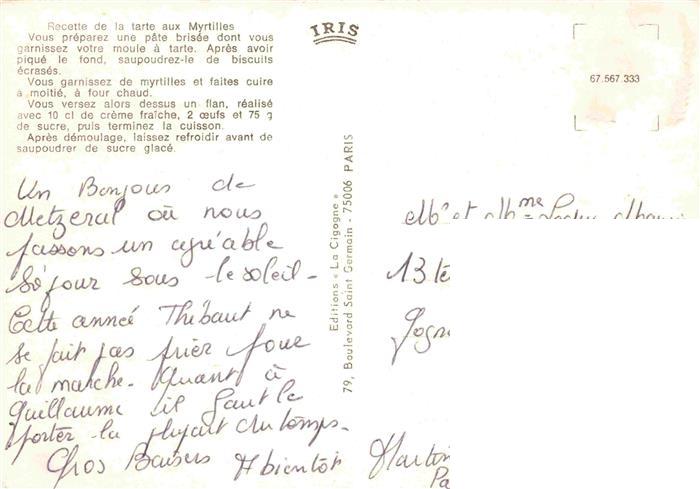 74026957 Rezept Recette– la Tarte aux Myrtilles Hirsche postalisch nicht gelaufen Erhaltung siehe scans [SanaeD93] KatCode: 22280