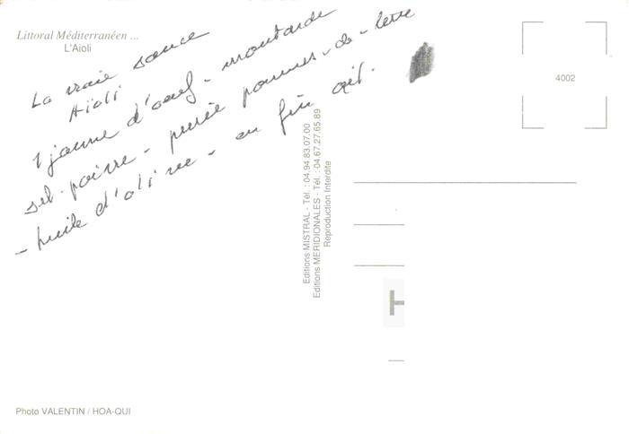 74026971 Rezept Recette– L’Aioli postalisch nicht gelaufen Erhaltung siehe scans [SanaeD93] KatCode: 22280
