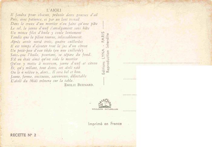 74026966 Rezept Recette– L’aioli postalisch nicht gelaufen Erhaltung siehe scans [SanaeD93] KatCode: 22280