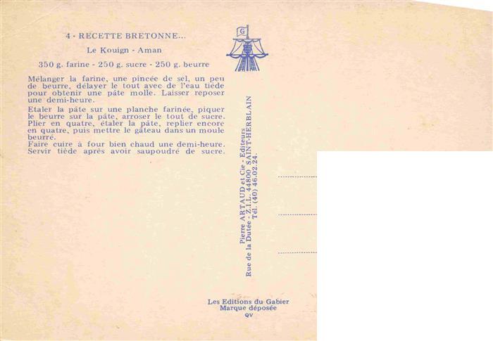 74027270 Rezept Recette– le Kouign Aman postalisch nicht gelaufen Erhaltung siehe scans [SanaeD93] KatCode: 22280