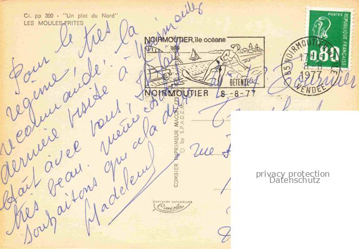 74021868 alte Postkarte Rezept Recette– lea Moules Frites postalisch gelaufen Erhaltung siehe scans [SanaeD93] KatCode: 22280
