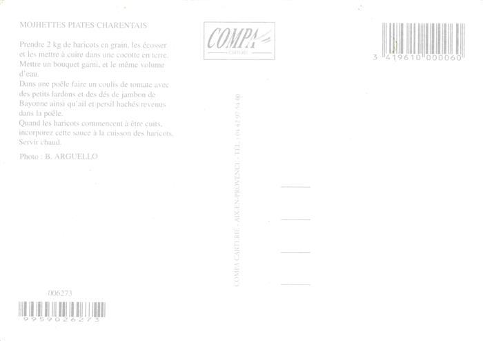 74026968 Rezept Recette– Mojhettes plates Charentais postalisch nicht gelaufen Erhaltung siehe scans [SanaeD93] KatCode: 22280