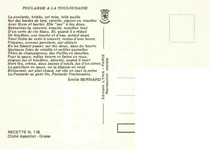 74028672 Rezept Recette– Poularde a la Toulousaine postalisch nicht gelaufen Erhaltung siehe scans [SanaeD93] KatCode: 22280
