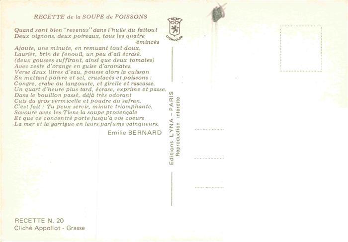 74026961 Rezept Recette– Soupe de Poissons postalisch nicht gelaufen Erhaltung siehe scans [SanaeD93] KatCode: 22280