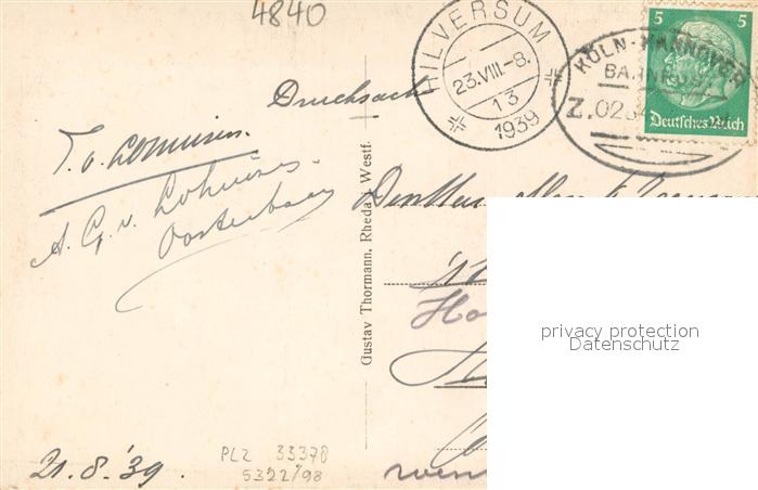 73705254 alte Postkarte Rheda-Wiedenbrueck Steinweg postalisch gelaufen Erhaltung siehe scans [WerneD78] KatCode: 11110005754028