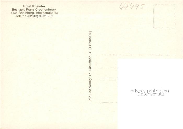 73867742 Rheinberg Hotel Rheintor Restaurant Fremdenzimmer postalisch nicht gelaufen Erhaltung siehe scans [FriedD77] KatCode: 11110005170032