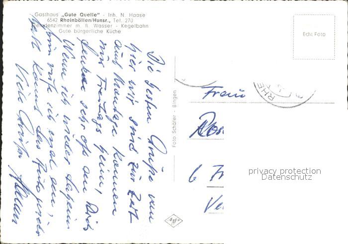 72132651 alte Postkarte Rheinboellen Gasthaus Gute Quelle Gaststube Teich postalisch gelaufen Erhaltung siehe scans KatCode: 11110007140125