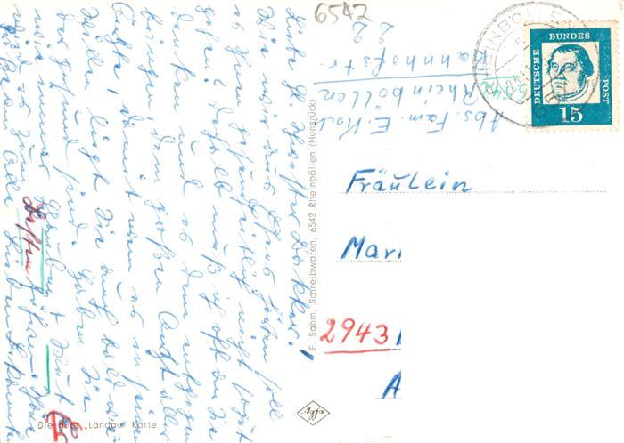 73864360 alte Postkarte Rheinboellen Ortsansicht mit Kirche Rathaus Guldenbach-Siedlung Volkenbacher Weiher postalisch gelaufen Erhaltung siehe scans [FriedD77] KatCode: 11110007140125