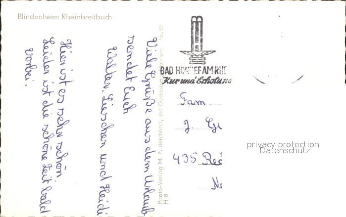 71917396 alte Postkarte Rheinbreitbach Blindenheim postalisch gelaufen Erhaltung siehe scans KatCode: 11110007138062