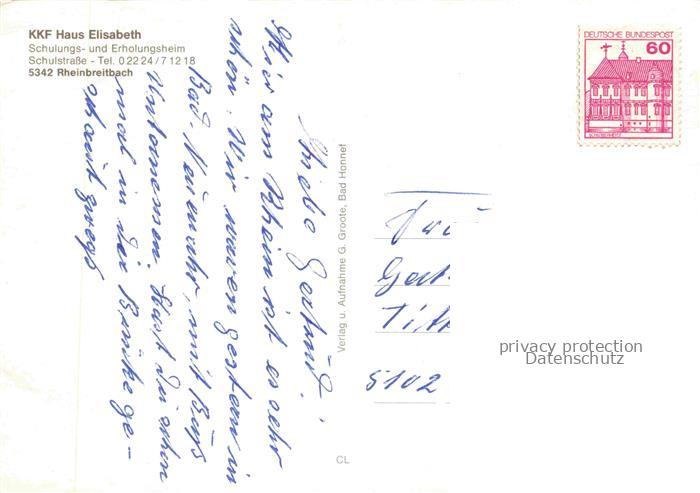 74040762 Rheinbreitbach KKF Haus Elisabeth Schulungs- und Erholungsheim Kapelle Gastzimmer Aufenthaltsraum postalisch nicht gelaufen Erhaltung siehe scans [FriedD77] KatCode: 11110007138062