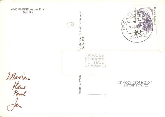 72415973 alte Postkarte Rheine an der Ems Basilika Kanu postalisch gelaufen Erhaltung siehe scans KatCode: 11110005566076