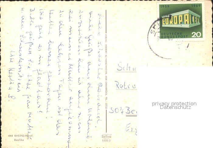 72437852 alte Postkarte Rheine Basilika postalisch gelaufen Erhaltung siehe scans KatCode: 11110005566076