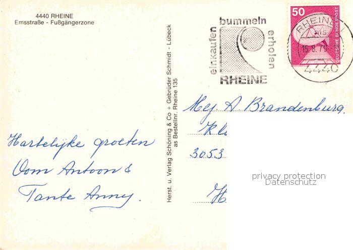 72655081 alte Postkarte Rheine Emsstrasse Fussgaengerzone postalisch gelaufen Erhaltung siehe scans [LiesaD40] KatCode: 11110005566076
