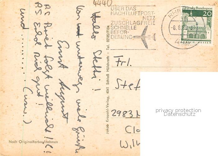 73870182 alte Postkarte Rheine Ortspartien Teich Kirche Schloss Brunnen Musikpavillon postalisch gelaufen Erhaltung siehe scans [WerneD78] KatCode: 11110005566076