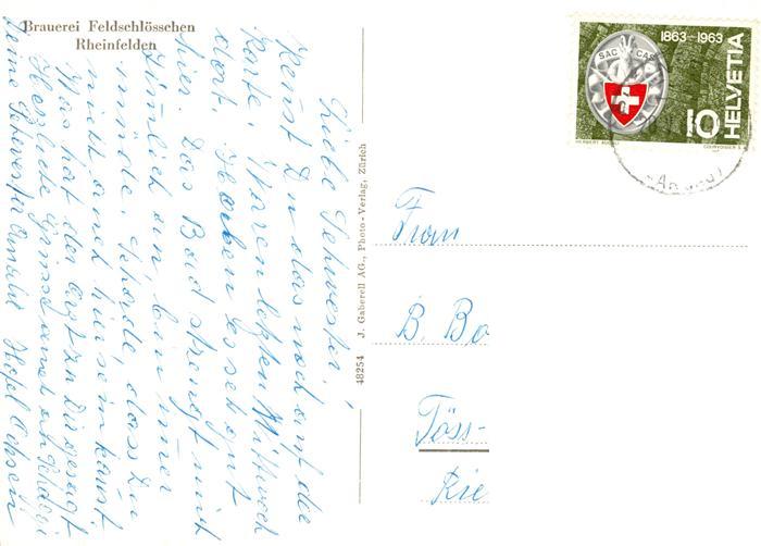 13872066 alte Postkarte Rheinfelden AG Brauerei Feldschloesschen postalisch gelaufen Erhaltung siehe scans [WerneD78] KatCode: 11470010045416