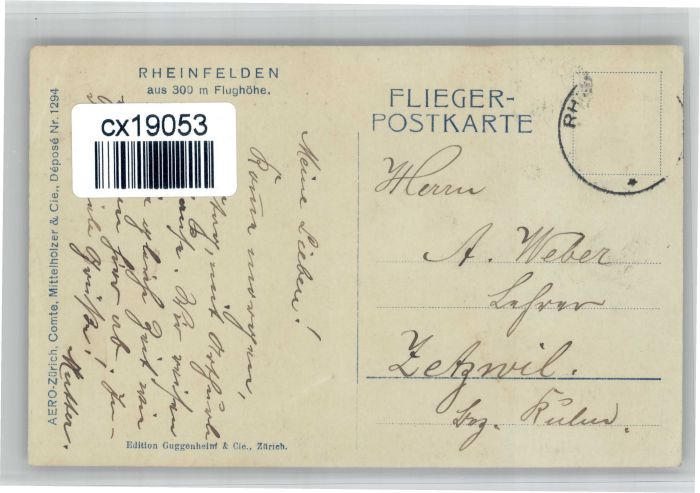 10722809 alte Postkarte Rheinfelden AG Rheinfelden Fliegeraufnahme postalisch gelaufen KatCode: 11470010045416