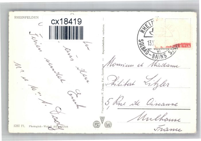 10722805 alte Postkarte Rheinfelden AG Rheinfelden Fliegeraufnahme postalisch gelaufen KatCode: 11470010045416
