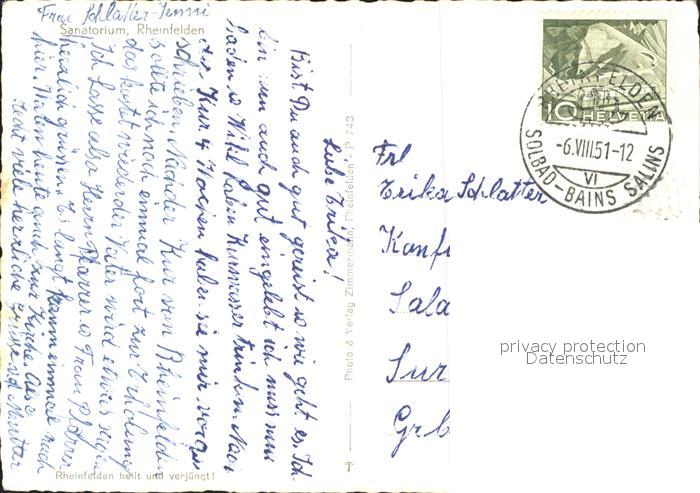 11627591 alte Postkarte Rheinfelden AG Sanatorium Fliegeraufnahme postalisch gelaufen Erhaltung siehe scans KatCode: 11470010045416