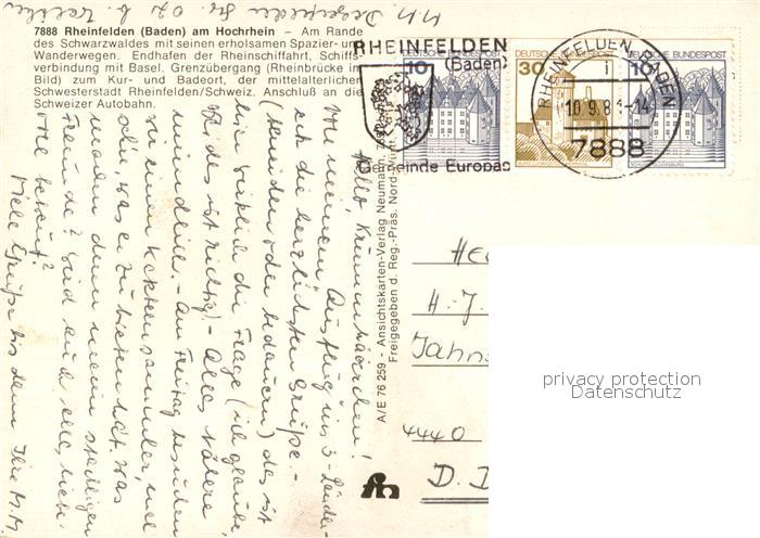 73701672 alte Postkarte Rheinfelden Baden Fliegeraufnahme mit Hochrhein postalisch gelaufen Erhaltung siehe scans [WerneD78] KatCode: 11110008336069
