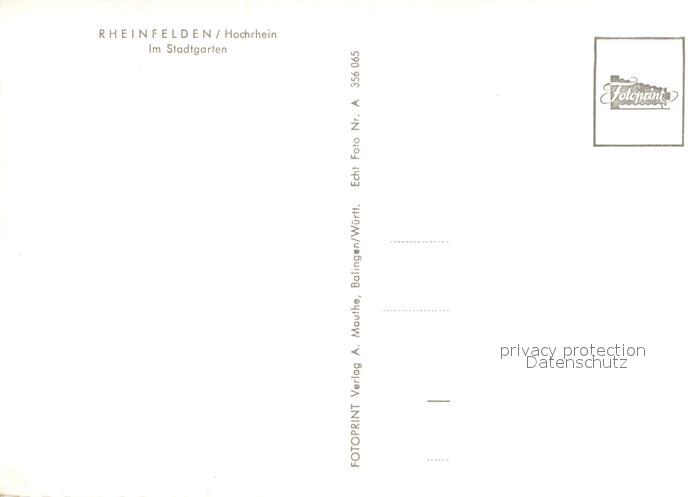 73004054 Rheinfelden Baden Im Stadtgarten postalisch nicht gelaufen Erhaltung siehe scans [WerneD78] KatCode: 11110008336069