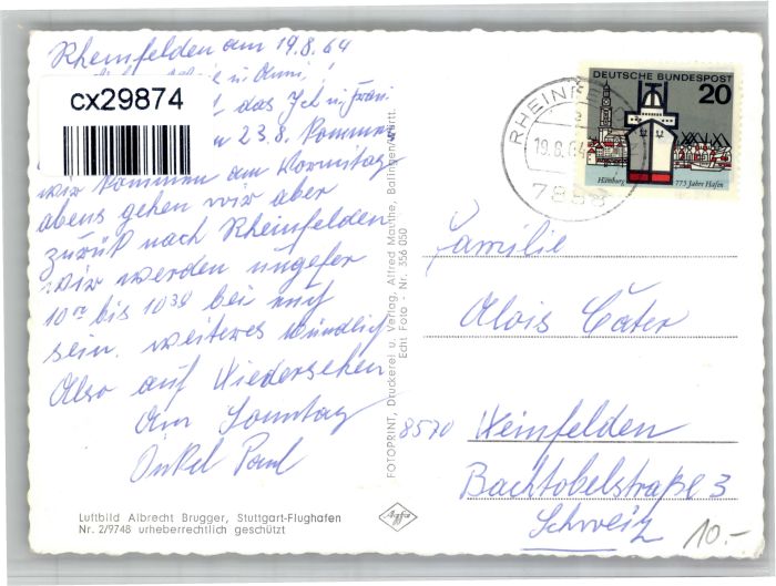 30923880 alte Postkarte Rheinfelden Baden Rheinfelden Fliegeraufnahme postalisch gelaufen KatCode: 11110008336069