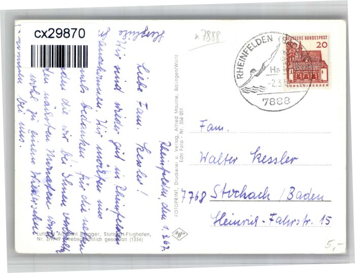 30923884 alte Postkarte Rheinfelden Baden Rheinfelden Fliegeraufnahme postalisch gelaufen KatCode: 11110008336069