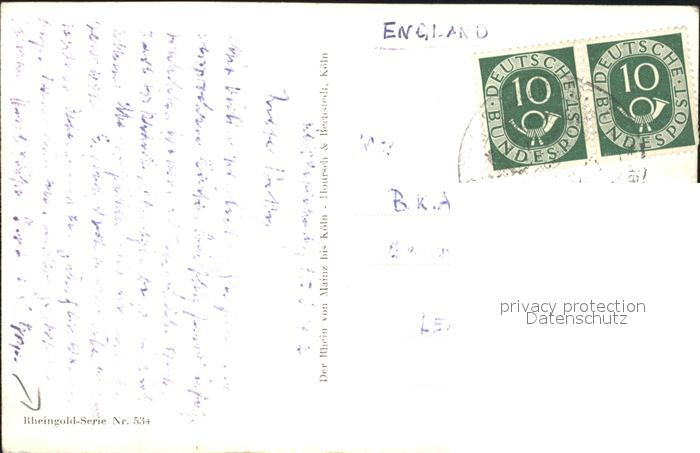alte Postkarte Rheingoldserie Nr. 534 Burg Rheinstein Dampfer postalisch gelaufen Erhaltung siehe scans